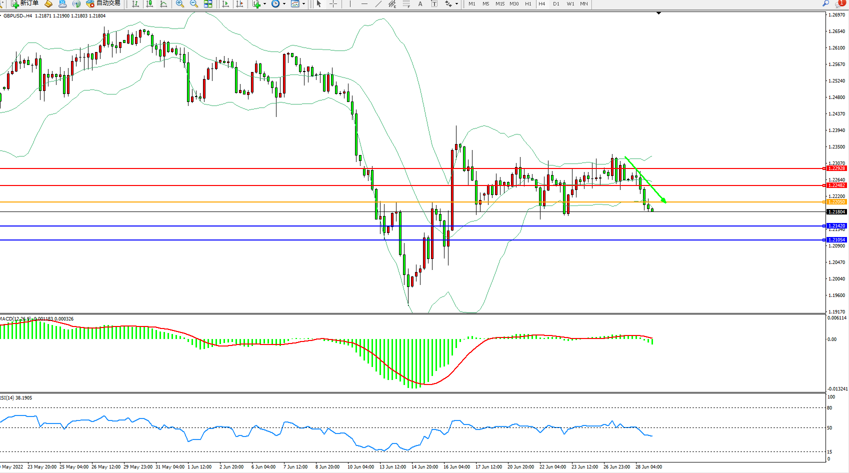 交易策略:1.22050下方看跌,目标1.21420、1.21054