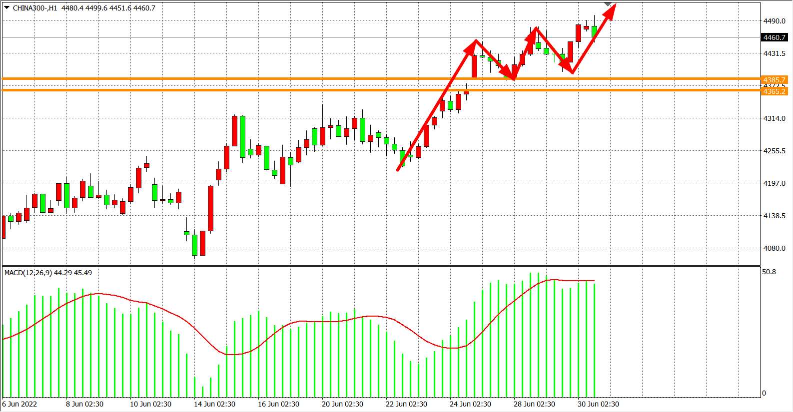 周四(6月30日)A股三大指数开盘走强,虽尾盘出现回落但沪深300指数收盘最终稳在1.44%的涨幅。值得关注的是,沪深300指数6月涨幅超9%,创出2020年7月以来的最佳月度表现。随着中国疫情利好的政策出台,有望进一步推动居民出行信心,后疫情消费复苏,通过同期的防控经验,未来大规模疫情爆发可能性较小,沪深300有望在消费复苏的带动下延续走强格局