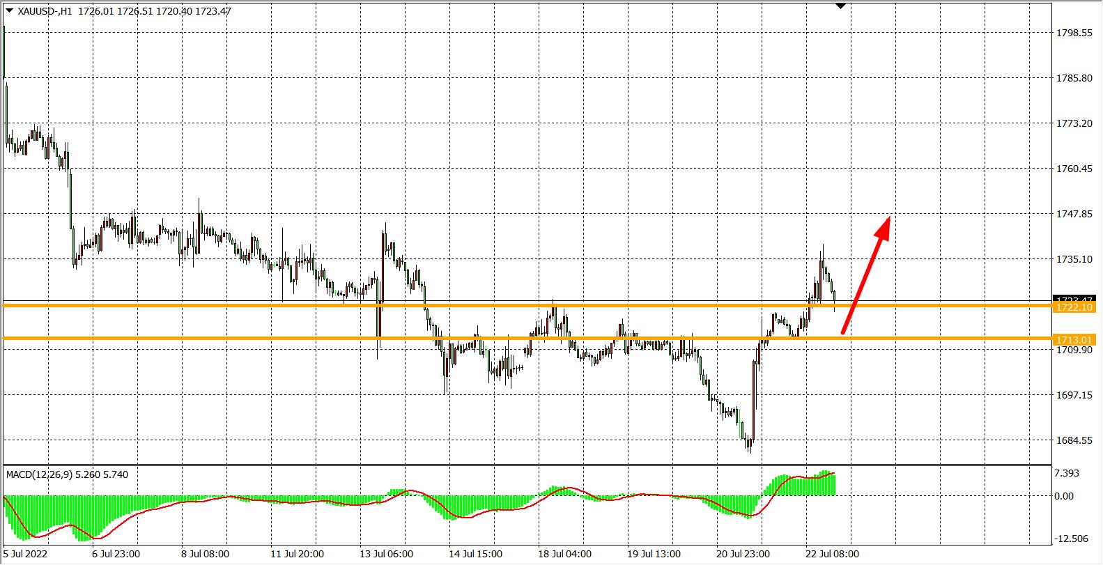 周五(7月22日)由于初步数据显示7月份制造业和服务业的活动好坏参半,美国对经济衰退的担忧继续加剧,美联储加息75个基点的预期骤然降温。受此影响,美元指数加速下跌,日内跌幅超60点,现货黄金则强势反弹刷新近期高点1739美元。对经济衰退的担忧以及疲软的美国经济数据对美联储加息预期降温,目前市场押注美联储9月加息50个基点,而非75基点,黄金在超跌后有望继续迎来反弹窗口期