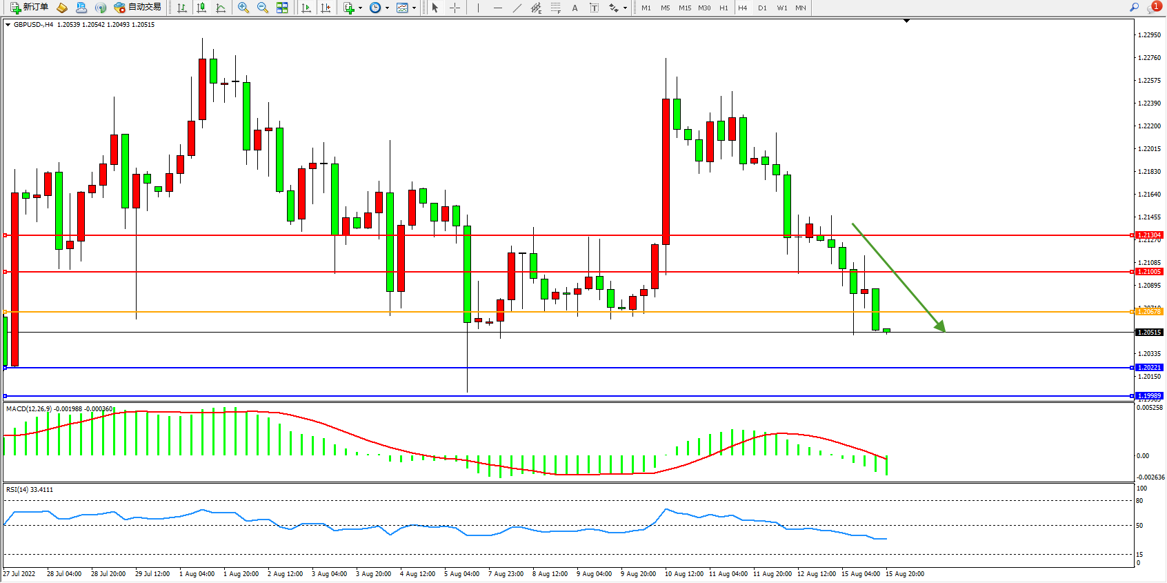 交易策略:1.20678下方看跌,目标1.20221、1.19989