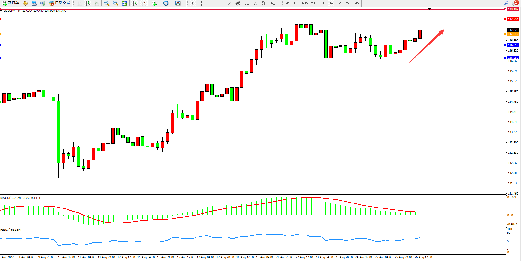 美元兑日圆维持137.376附近震荡,日本央行(BOJ)董事会成员中村丰明表示,日元疲软有利于日本出口,但会提高进口成本。日元疲软有利有弊,所以必须仔细观察,尽管日本央行能做的不多,因为最近日元下跌主要是受美国加息推动。