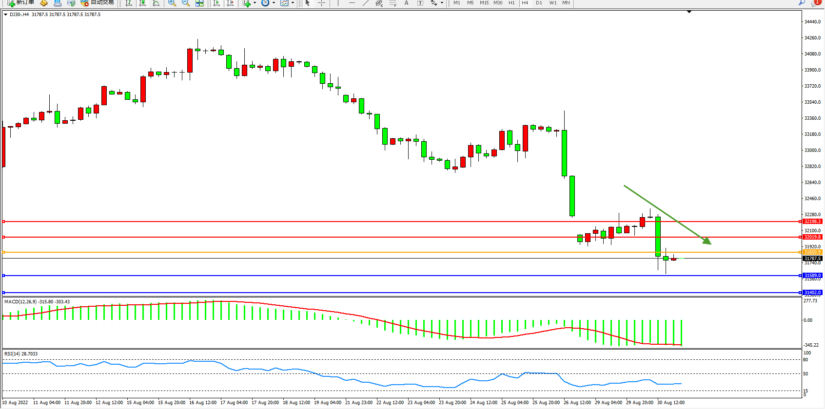 道琼斯指数8月30日(周二)收盘下跌308.25点,跌幅0.96%,报31790.74点;美国8月份谘商会消费者信心指数的上升与油价下跌相呼应,也与美国8月密歇根大学消费者信心指数的上升相一致。