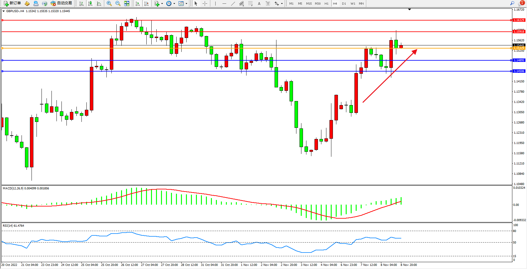 英镑美元GBPUSD ——4小时K线图显示: