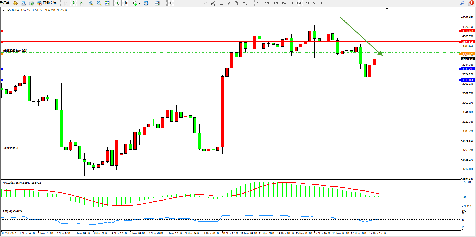 标普标普500指数11月17日(周四)收盘下跌10.79点,跌幅0.27%,报3948.00点;美联储布拉德:由于美联储努力对抗通胀,通胀风险现在可能有所上升,但这不会是基本情况。目前的基本情况是经济缓慢增长而不是出现衰退,不过冲击可能会改变前景。