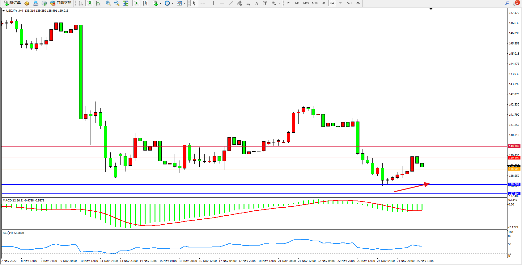 备选策略:138.900下方看跌,目标138.082、137.594