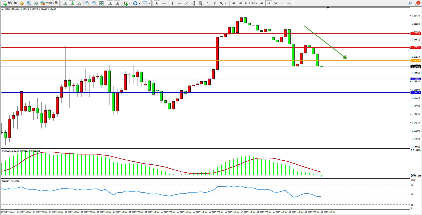 交易策略:1.19720下方看跌,目标1.19006、1.18478