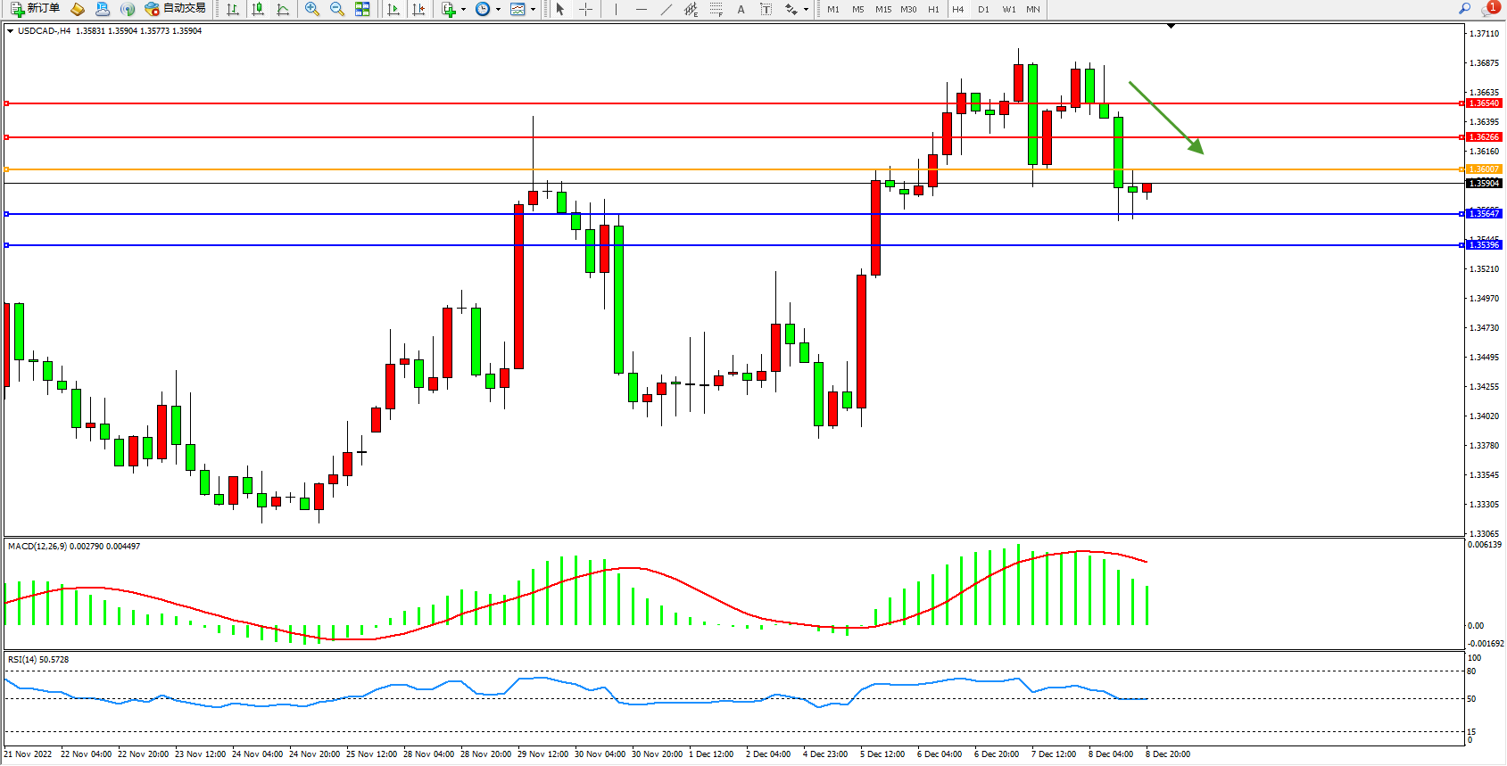 交易策略:1.36007下方看跌,目标1.35647、1.35396