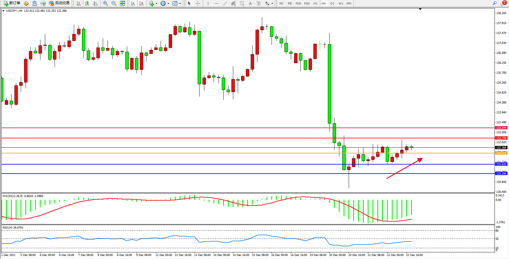4小时图看:低位多头动力窄幅震荡缓慢上移,市场多头情绪开始缓慢涌现,MACD指标处于空头区域整理缓慢上行中,RSI指标处于50均衡线下侧弱势整理;