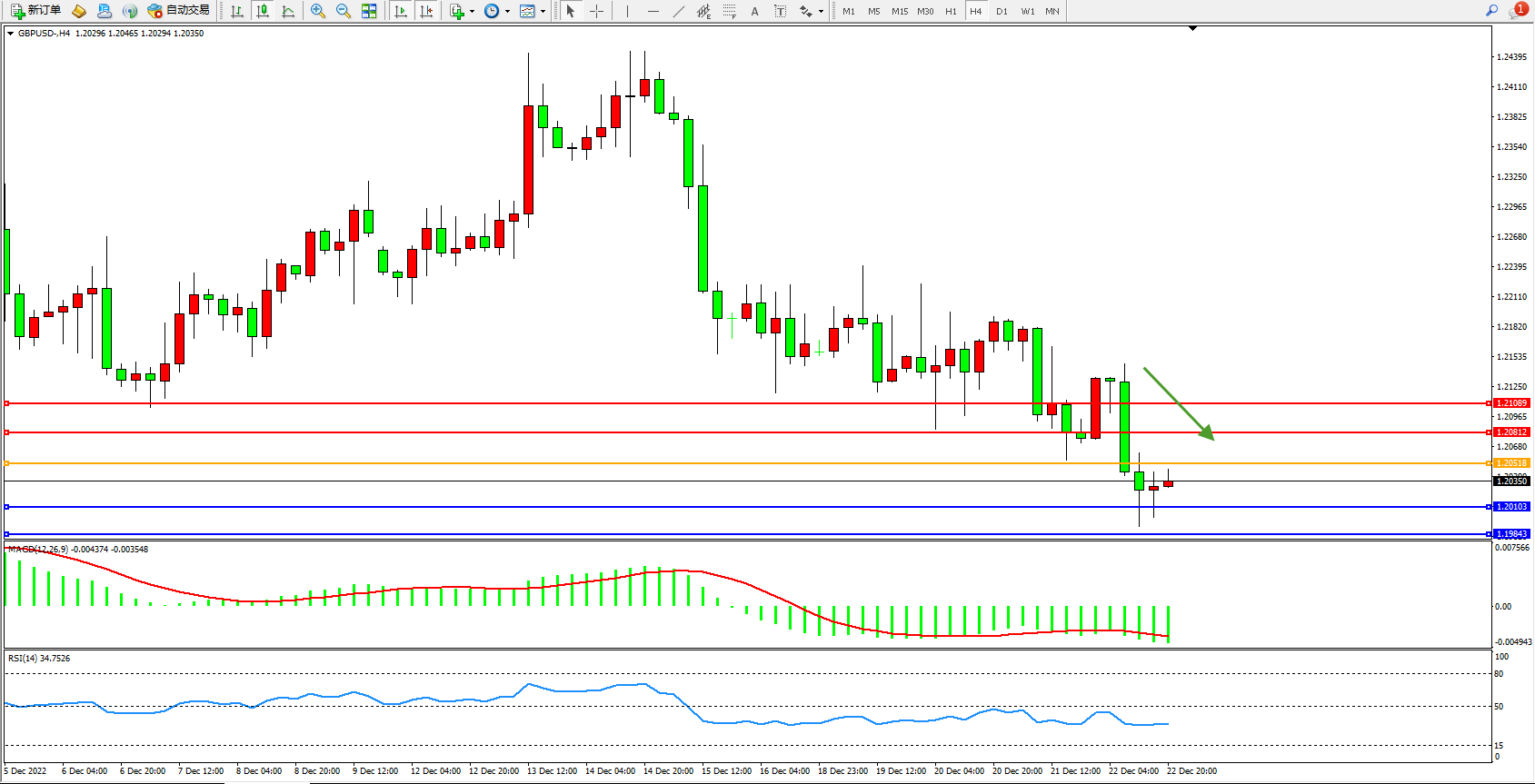 交易策略:1.20518下方看跌,目标1.21013、1.19843