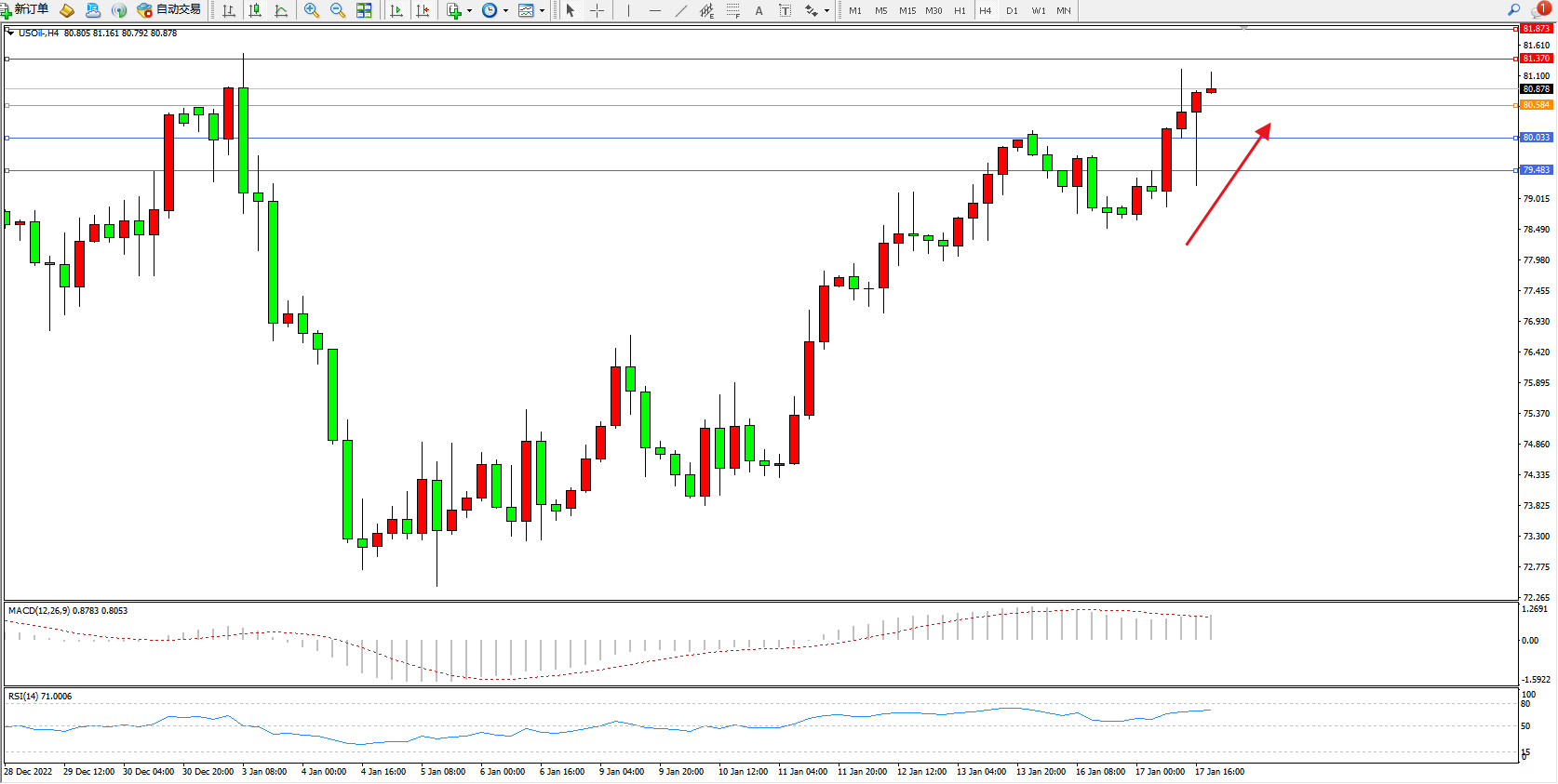 原油维持80.878附近震荡,欧佩克月报:二手资料显示,伊拉克12月原油产量减少0.4万桶/日,至448.0万桶/日,将2022年美国经济增长预期从1.7%上调至2.0%。