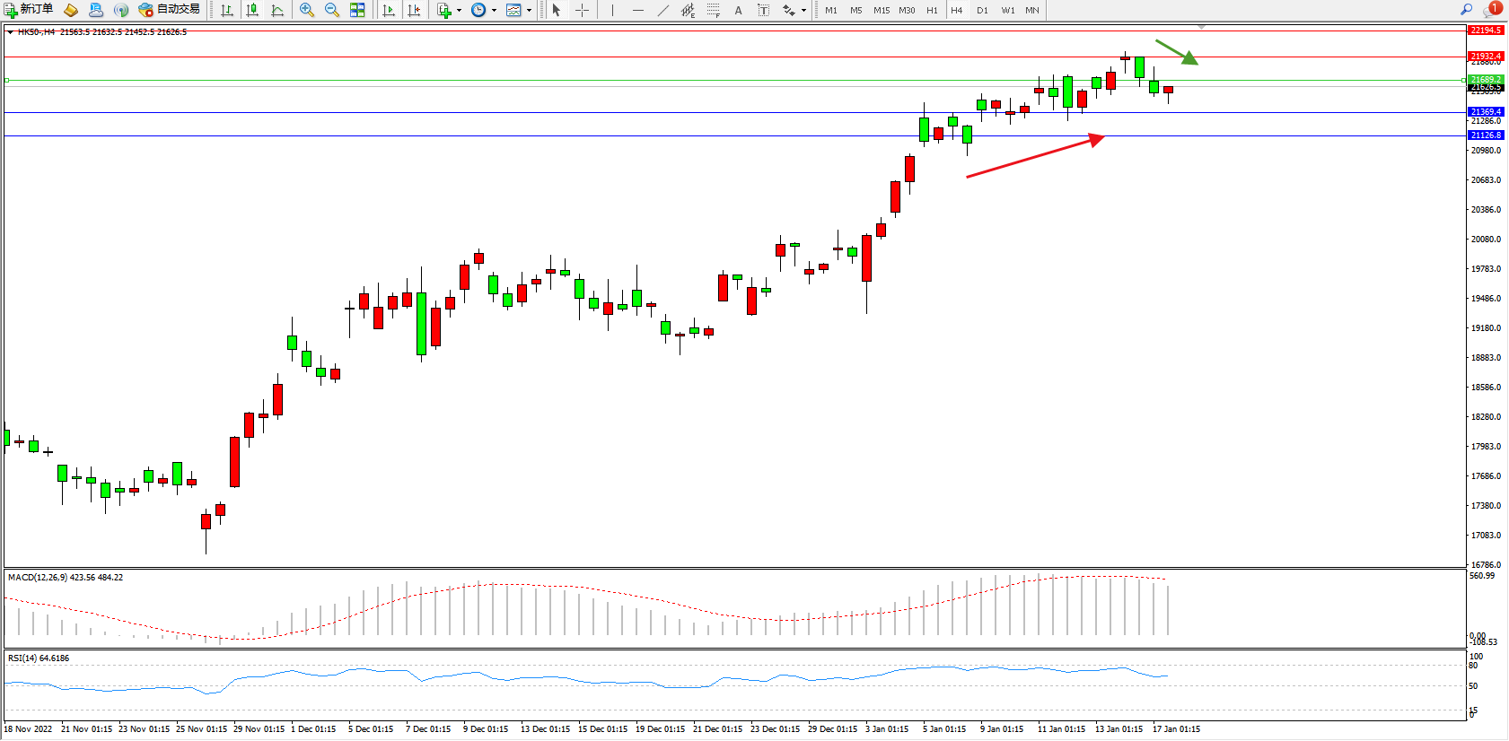 香港恒生指数1月17日(周二)收盘下跌169.08点,跌幅0.78%,报21577.64点;港股三大指数早盘小幅冲高后持续走弱,三大指数午后均跌超1%,恒指最终下跌0.78%,国指跌0.49%,恒生科技指数跌0.14%。大型科技股多数下跌,京东、百度、小米均跌超1%,网易、美团均下跌,阿里巴巴、腾讯逆势涨近1%;苹果概念股、半导体股表现活跃,特步国际一度大涨超14%。南下资金净流入42.88亿港元,大市成交额为1267亿港元。