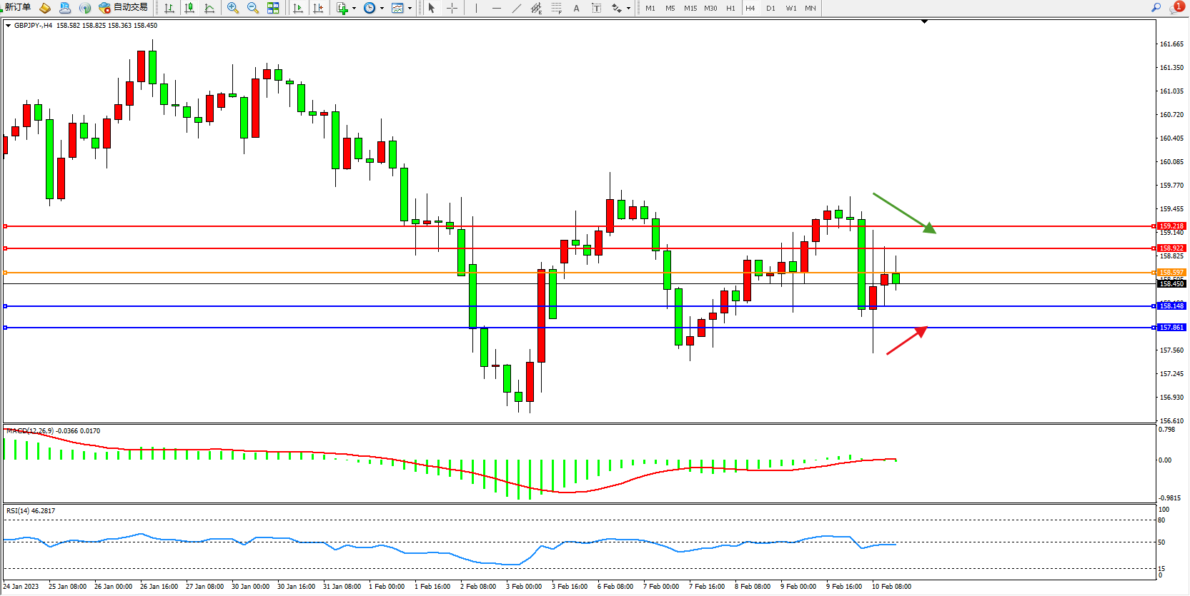 交易策略:158.597下方看跌,目标158.148、157.861