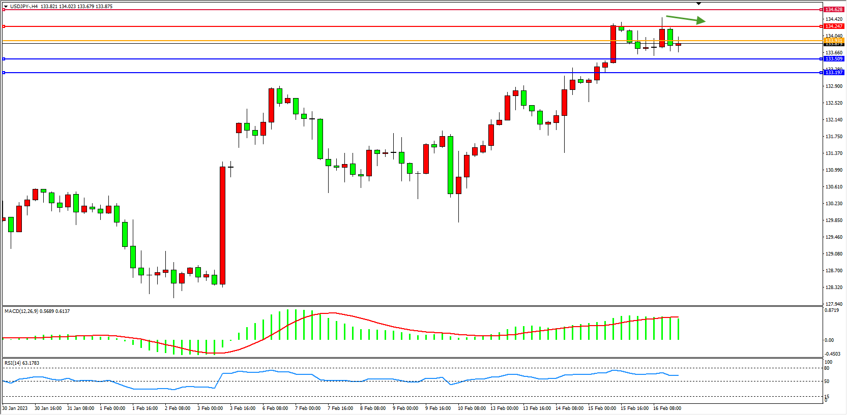 交易策略:133.931下方看跌,目标133.509、133.197