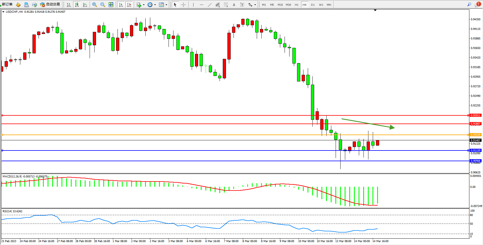 美元兑瑞郎维持0.91407附近震荡,市场预测美联储3月22日将降息25个基点,在硅谷银行危机发生前原本预测升息50个基点。
