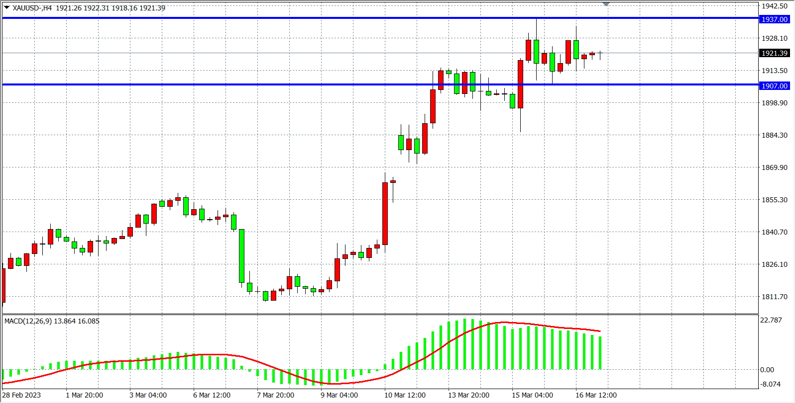 现货黄金XAUUSD四小时图