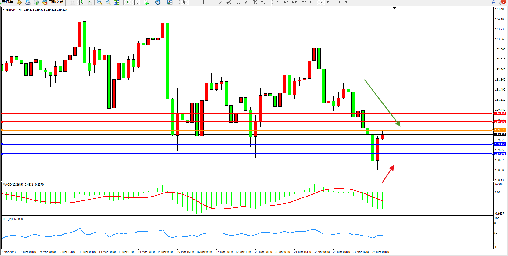 4小时图看:空头动力维持震荡持续下挫,短期跌势或将延续,市场整体处于偏弱势下移,MACD指标处于空头区域整理下移,RSI指标处于50均衡线下侧弱势整理;