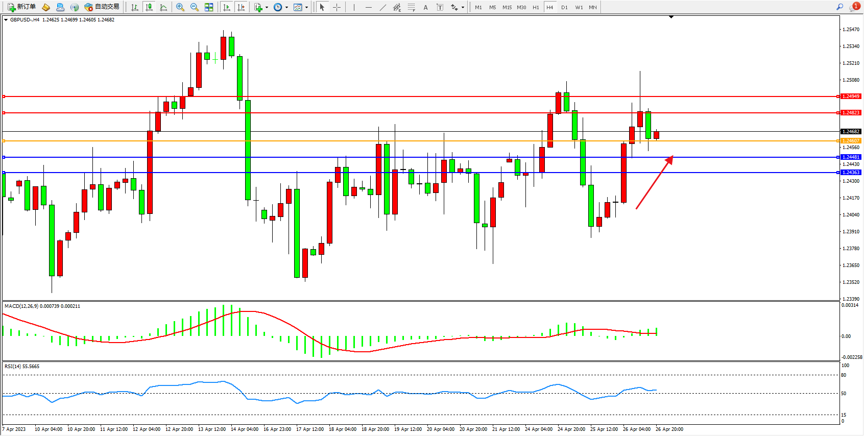 交易策略:1.24607上方看涨,目标1.24823 1.24949