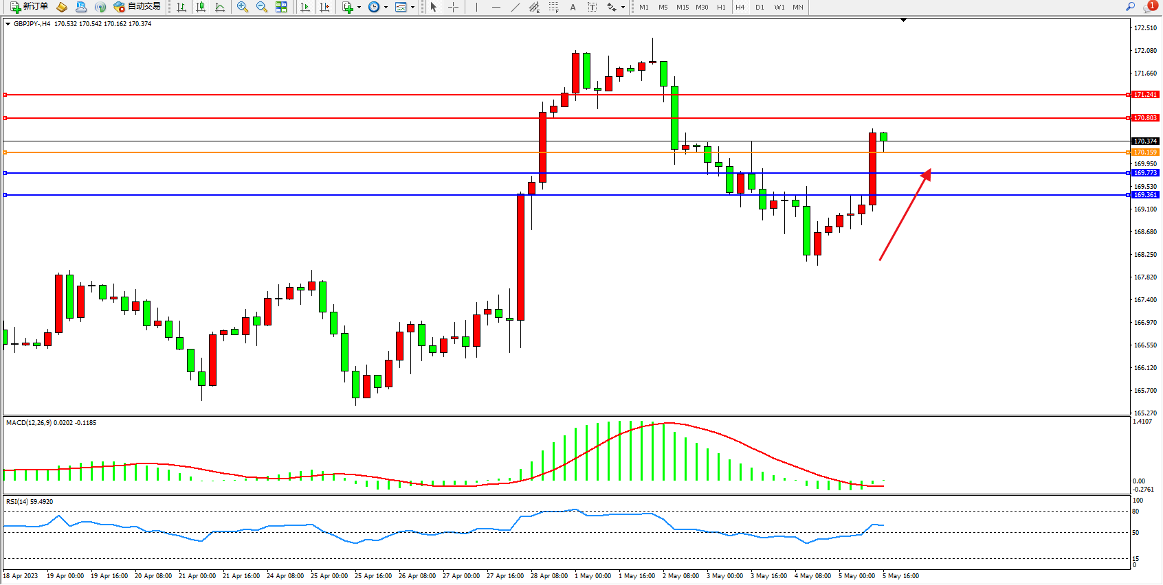 交易策略:170.159上方看涨,目标170.803 171.241