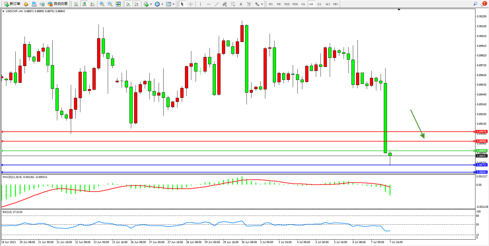 USDCHF:空头急挫 USDCHF  XAUUSD