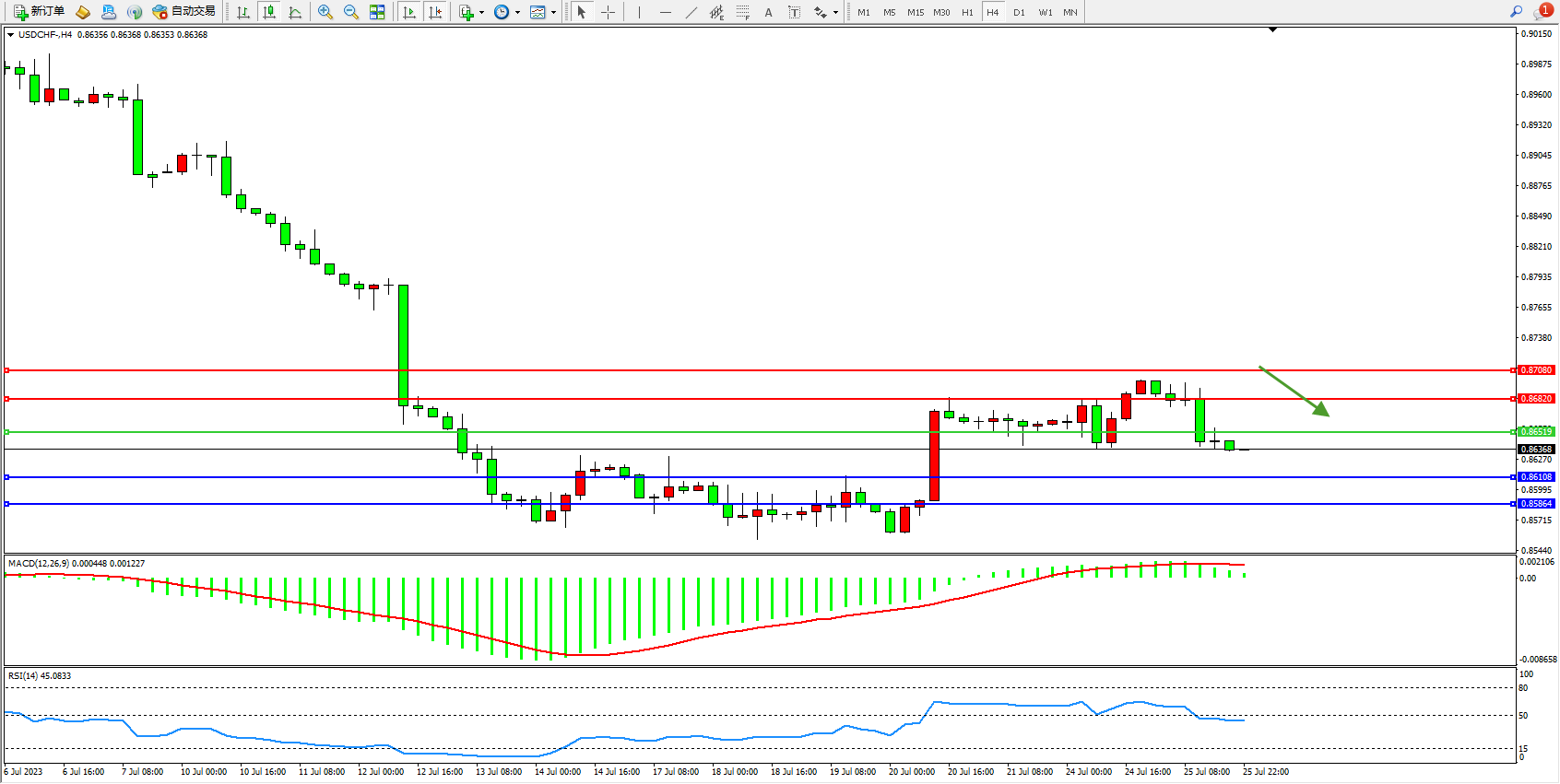 交易策略:0.86519下方看跌,目标0.86108 0.85864