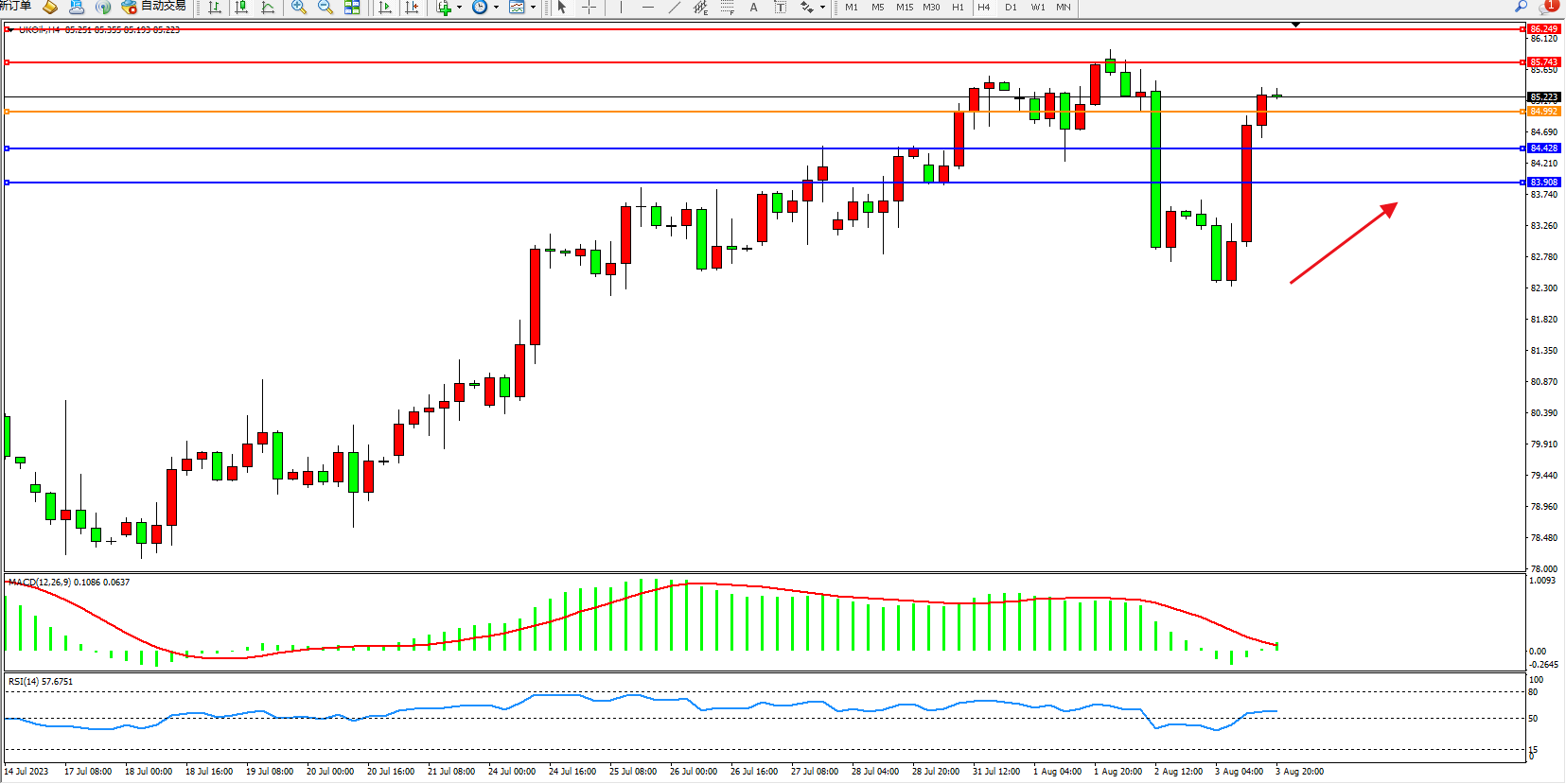 4小时图看:多头动力高位攀升,短期看涨情绪笼罩,市场多头不断攀升,MACD指标处于0轴线附近整理,RSI指标处于50均衡线上側弱势徘徊;