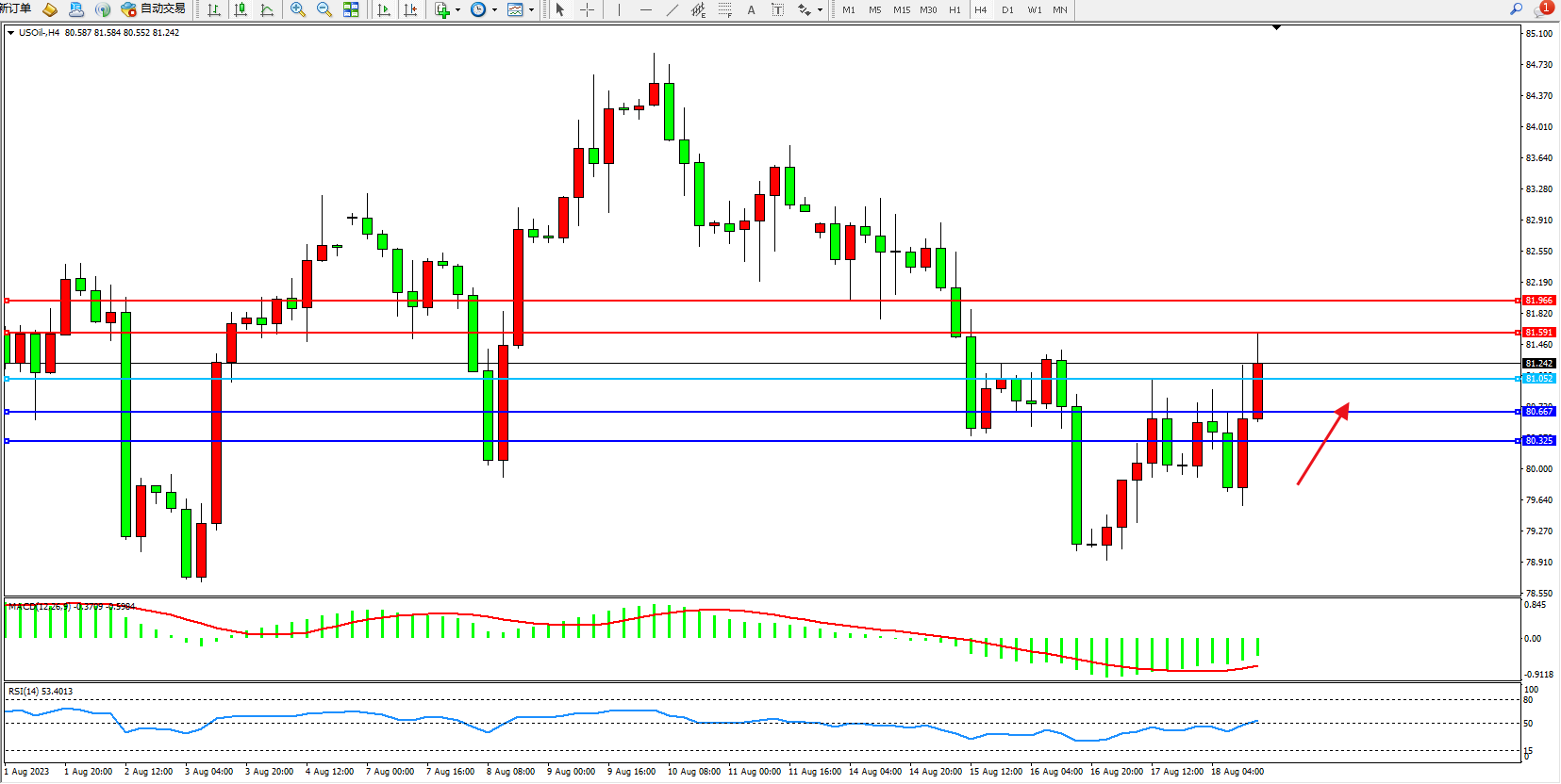 原油USOil——4小时K线图显示: