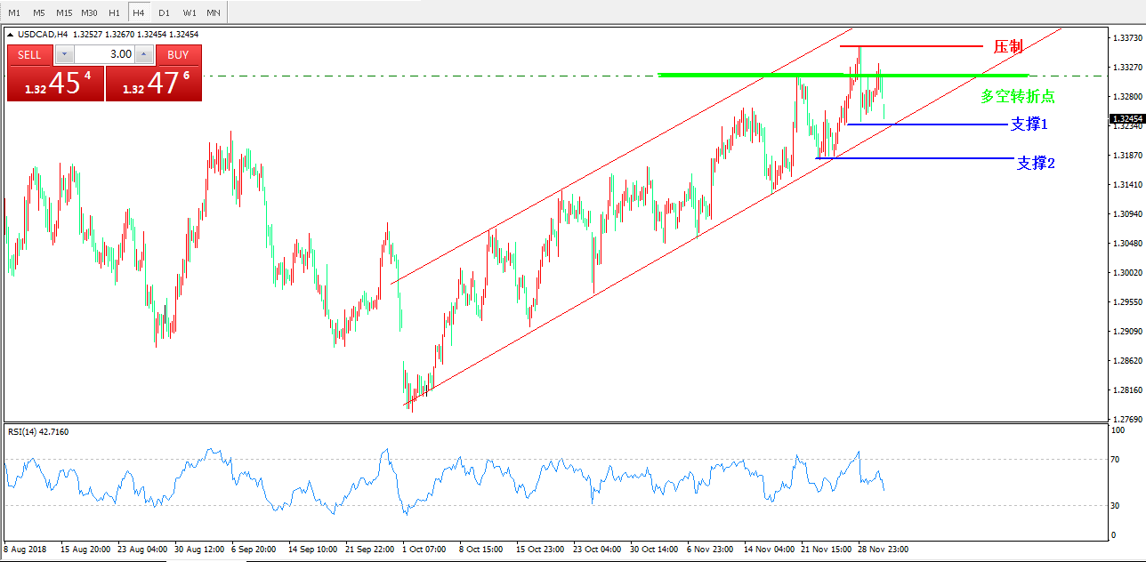 基本面简析: 美墨加协定的签署,中美贸易谈判的大的突破,俄罗斯对减产的认可提振油价,均一定程度施压美元兑加元。