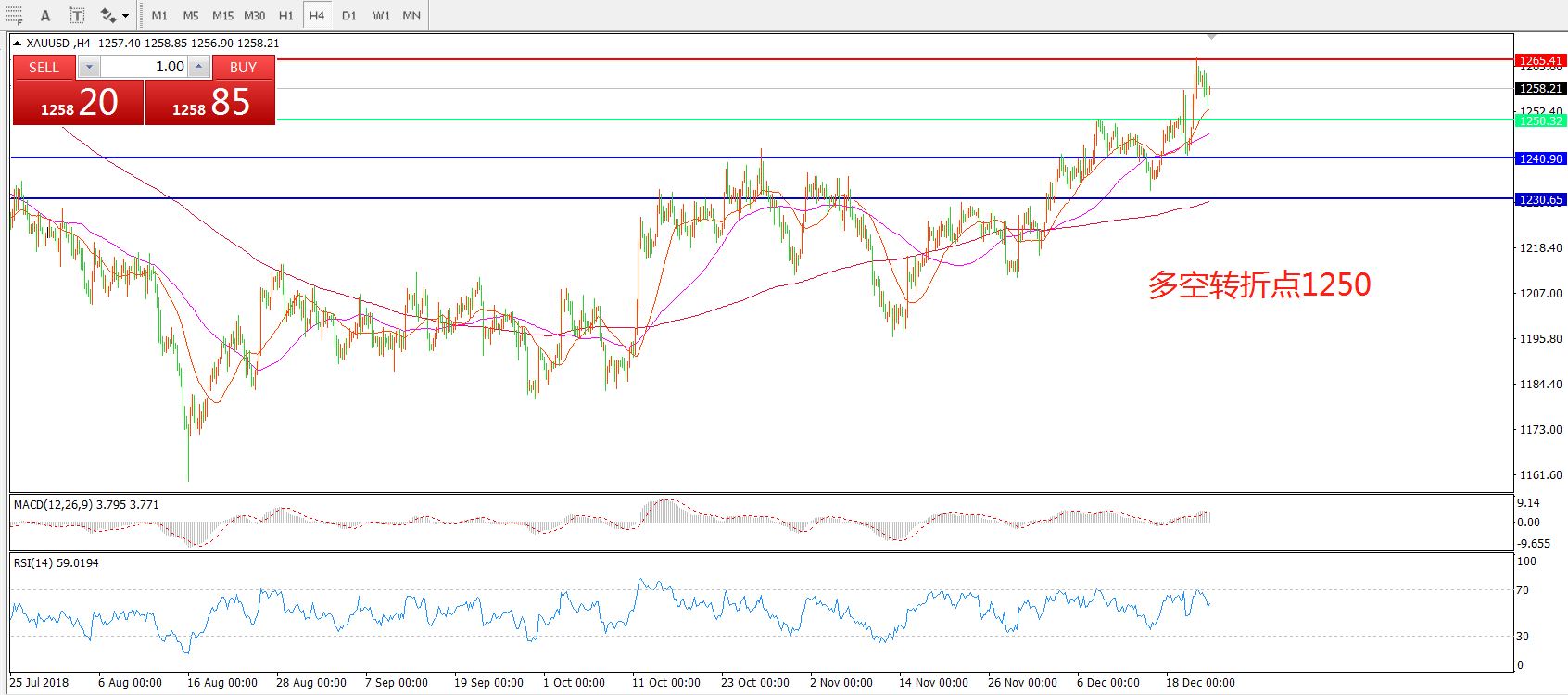 交易策略:在1250.00之上看涨,目标1265.00 1280.00