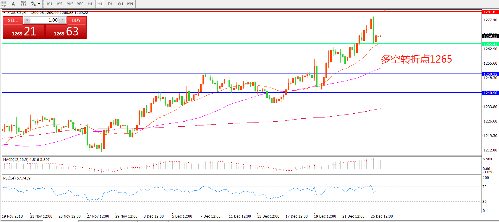交易策略:在1265.00之上看涨,目标1280.00  1300.00