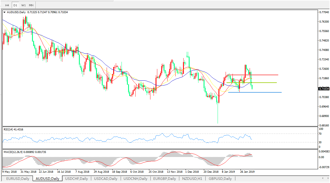 交易策略:在0.7145之下,看跌,目标价位为0.7075,然后为0.6990.