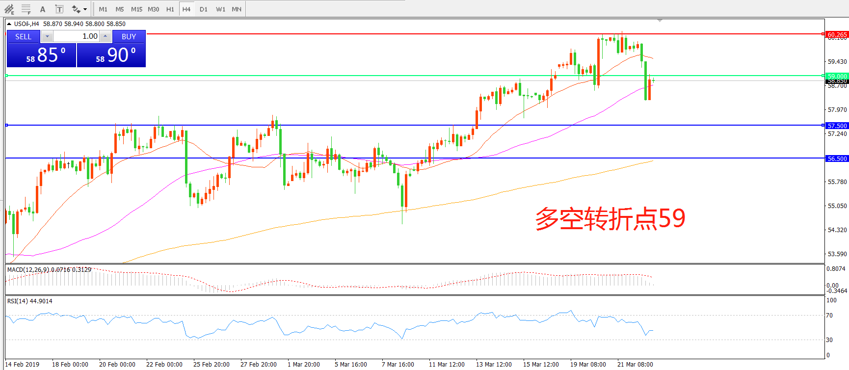 交易策略:在59.00 之下看跌,目标57.50 56.50