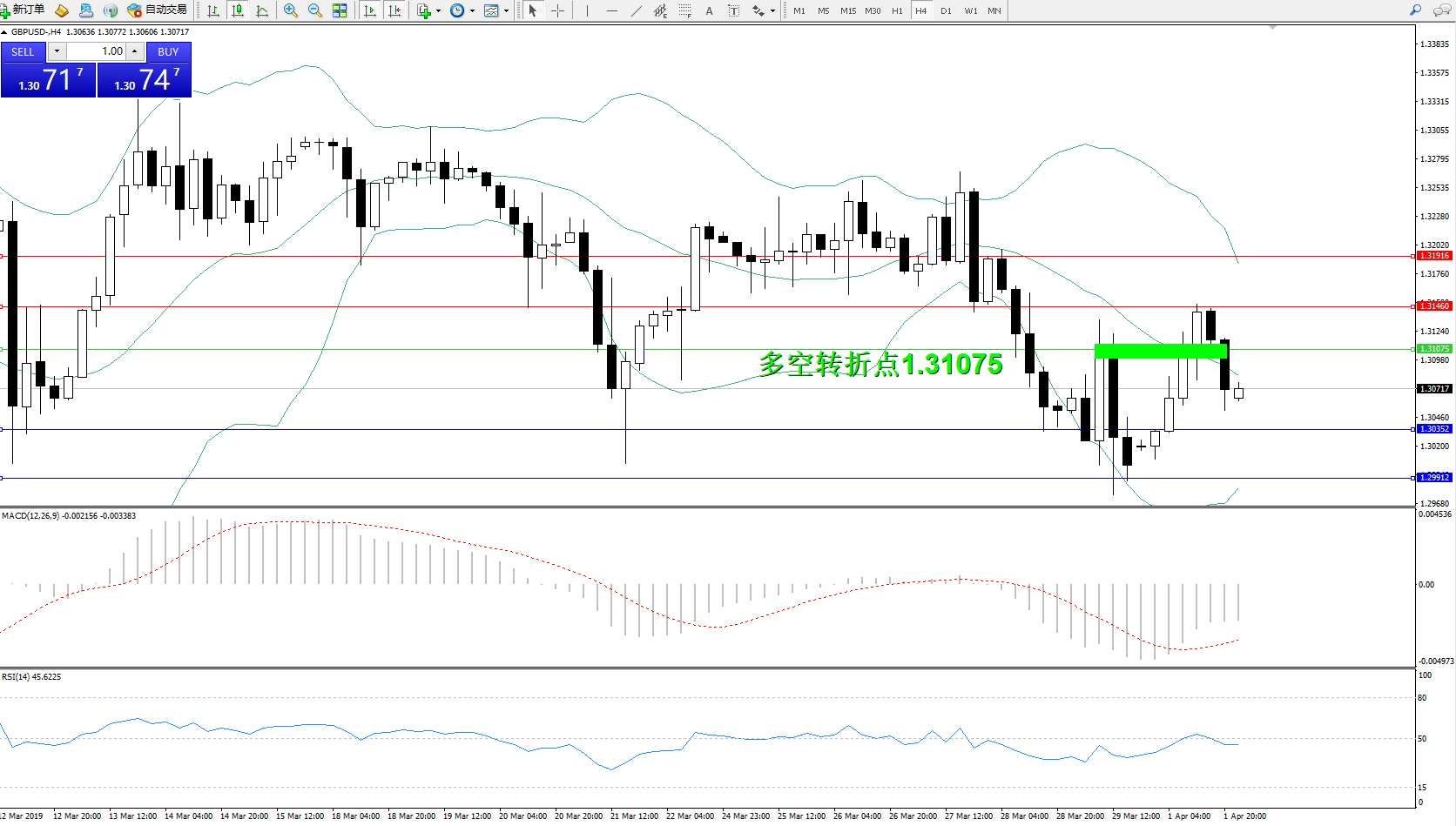 交易策略:1.31075下方看跌,目标1.30352、1.29912