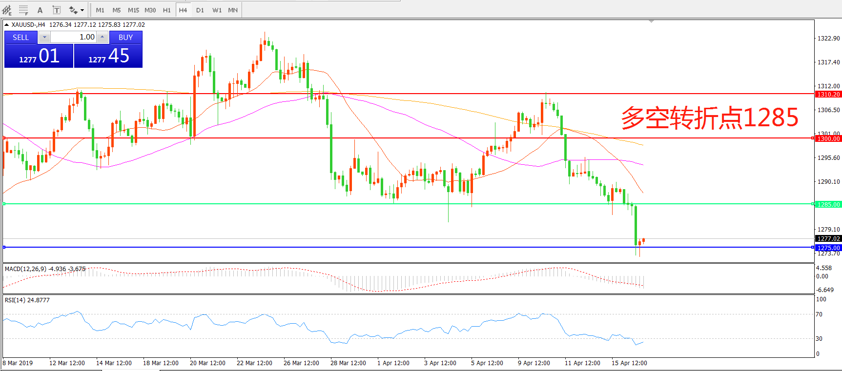 多空转折点:1285.00