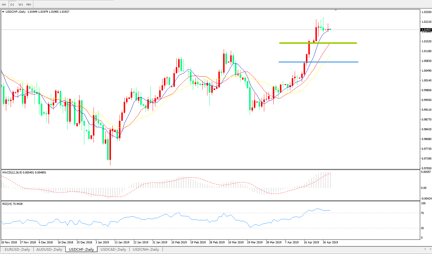 美元瑞郎USDCHF   日线图: