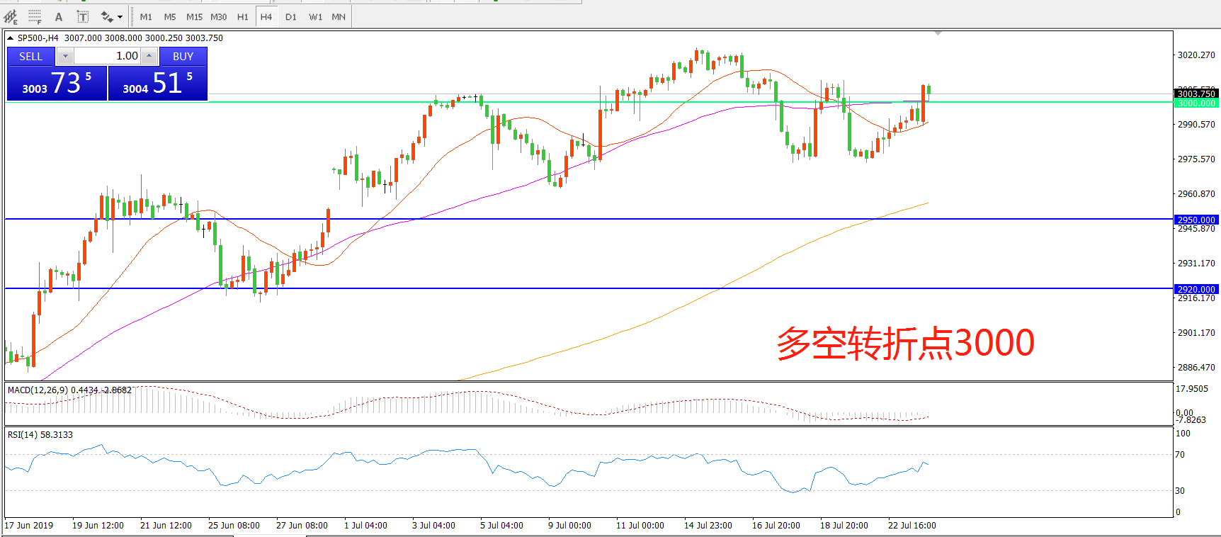 多空转折点:3000.00