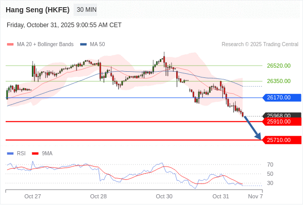 在 26170.00 之下,看跌,目标价位为 25910.00 ,然后为 25710.00 。