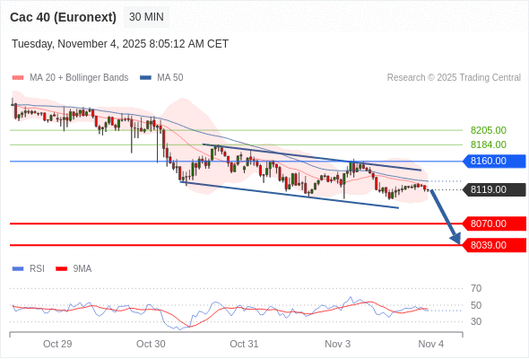 在 8160.00 之下,看跌,目标价位为 8070.00 ,然后为 8039.00 。