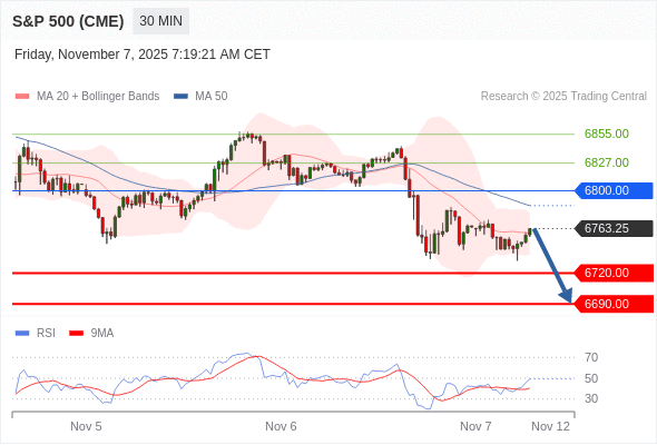 在 6800.00 之下,看跌,目标价位为 6720.00 ,然后为 6690.00 。