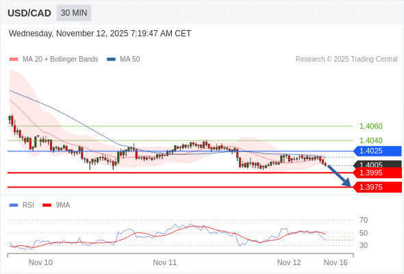 在 1.4025 之下,看跌,目标价位为 1.3995 ,然后为 1.3975 。