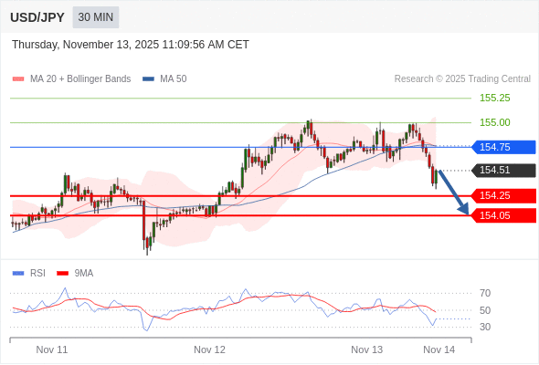 在 154.75 之下,看跌,目标价位为 154.25 ,然后为 154.05 。