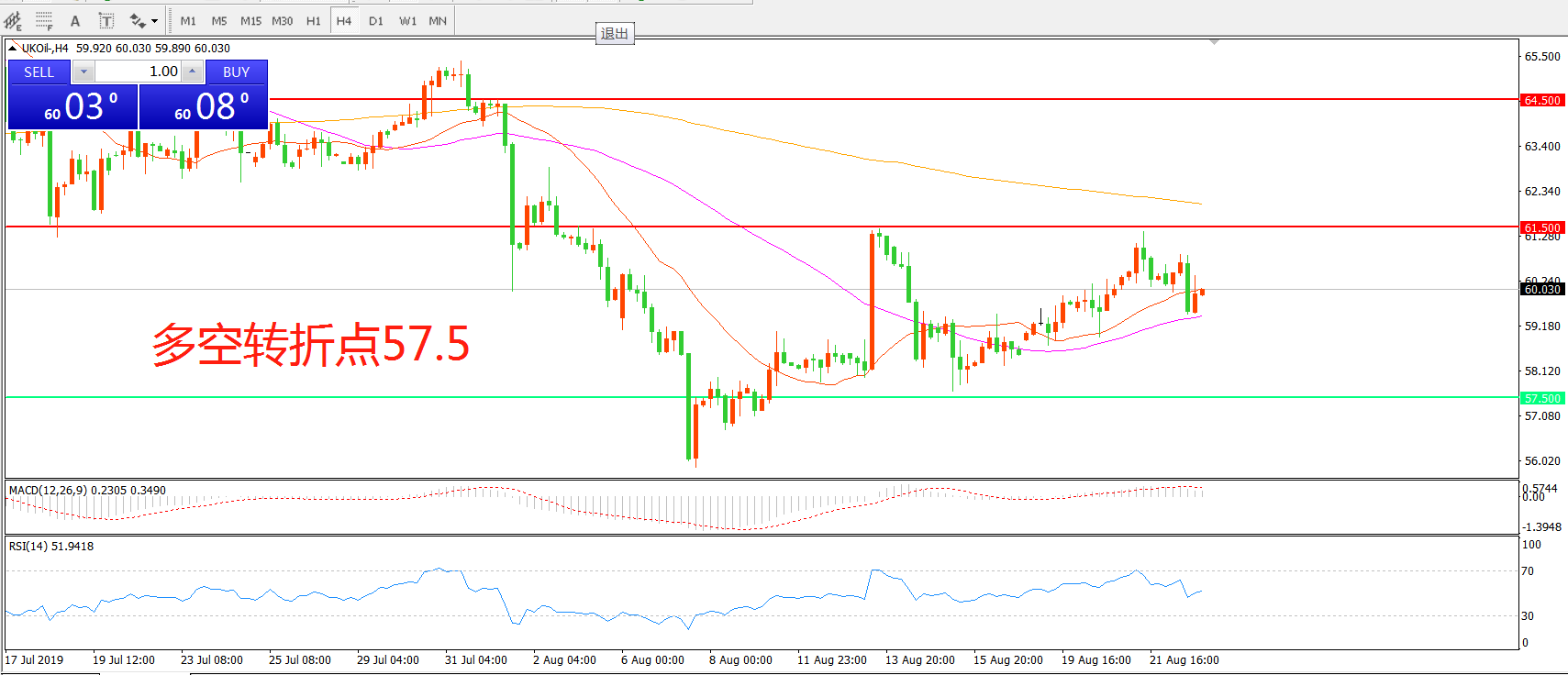 周四(8月22日),因投资者关注焦点集中在杰克逊霍尔央行年会方面,从而暂时保持谨慎,贸易局势以及经济放缓引发的原油需求忧虑令油价再度承压,布油再次下探59美元支撑,最终收报60.03美元。但EIA原油库存下降依然为油价带来一定支撑,整体维持宽幅震荡概率较大。
