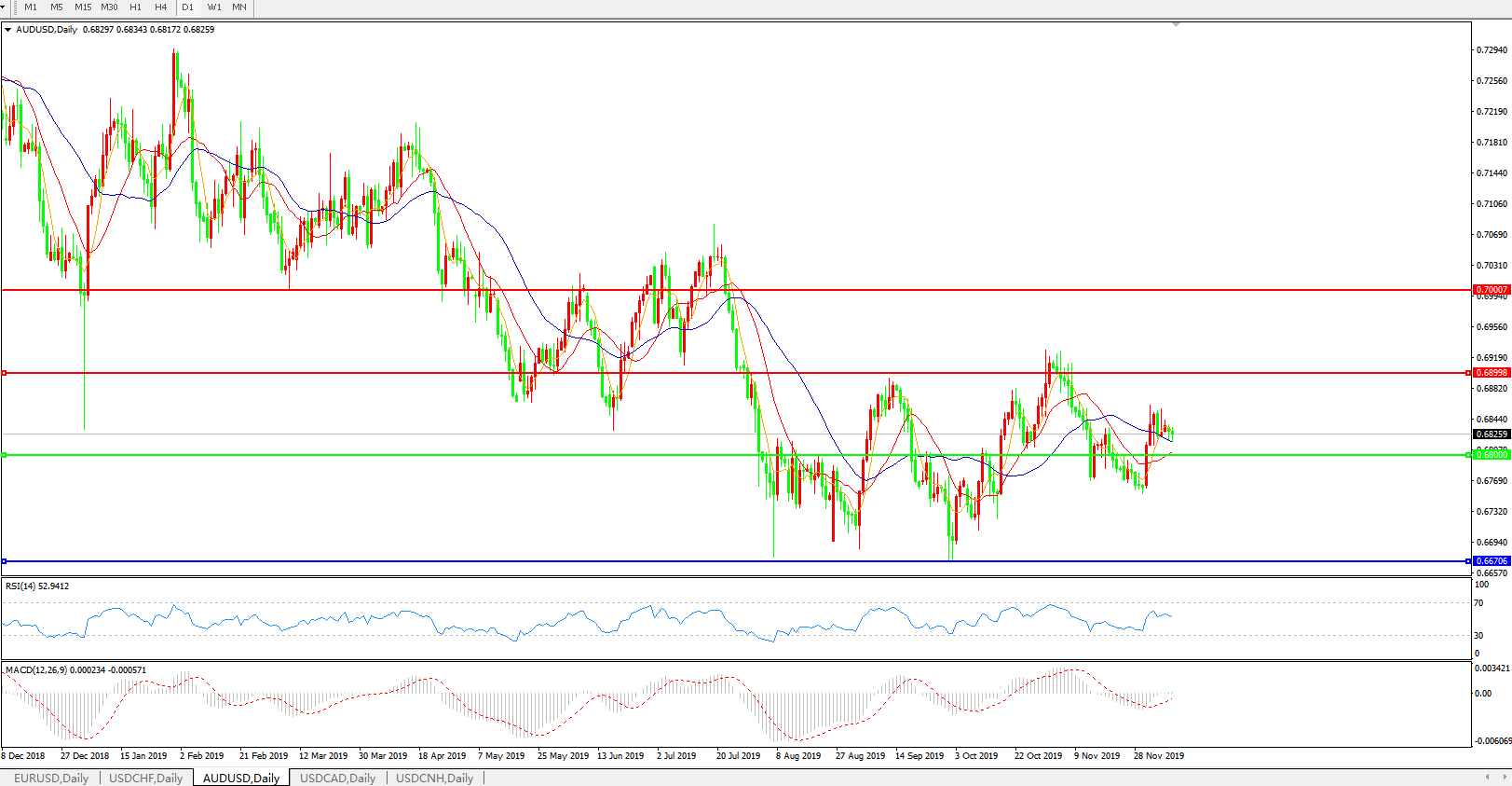 交易策略:0.6800上方看涨,目标0.6900、0.7000