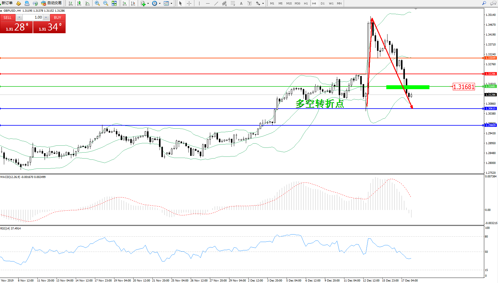 交易策略:1.31681下方看跌,目标1.30615、1.29809