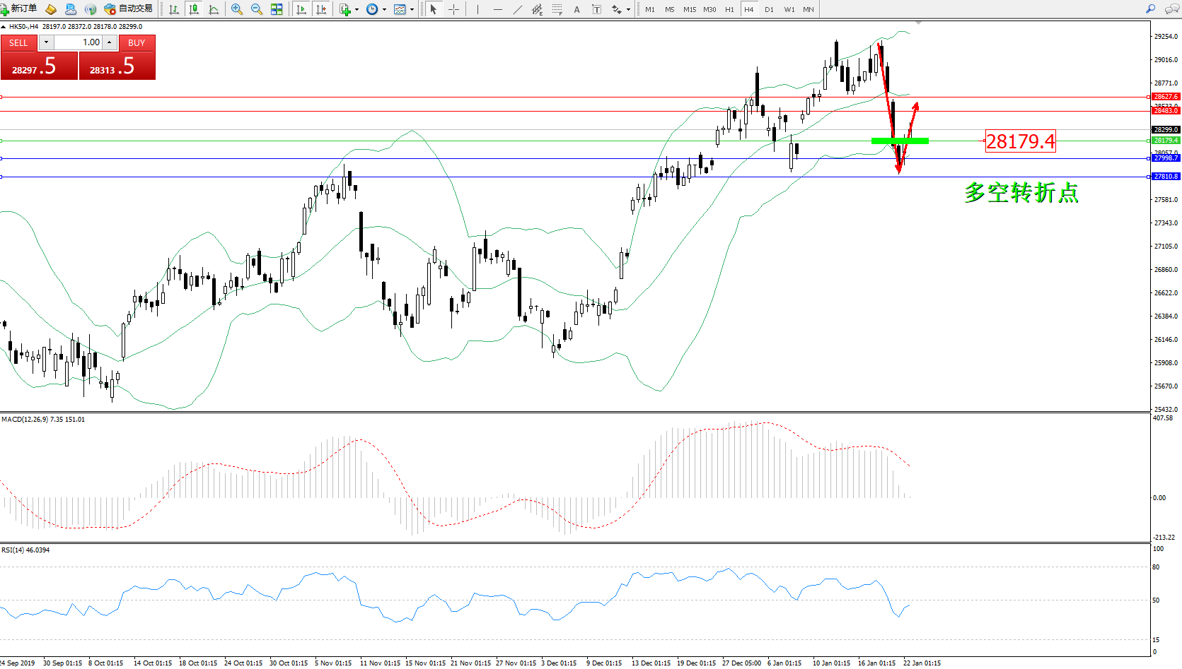 香港恒生指数1月22日(周三)收盘上涨355.71点,涨幅1.27%,报28341.04点;港股市场集体反弹上涨,国指更是大涨近2%。前两日市场受肺炎疫情影响,加之处于阶段高位,昨日大幅下跌。今市场明显反弹,疫情对市场影响有所削弱,投资者信心回升明显。医药股走高,平安好医生涨近12%,东阳光药涨7.98%,康龙化成大涨7.7%,华润医药涨9.2%,联邦制药、石药集团等大涨。华为概念股集体走高,其中,舜宇光学科技涨5%,瑞声科技涨3.6%,丘钛科技涨3.5%,比亚迪电子涨8.5%。