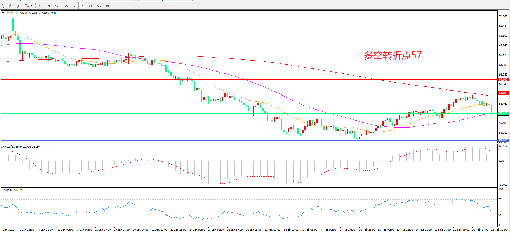 交易策略:在57.00之下看跌,目标53.00 50.00