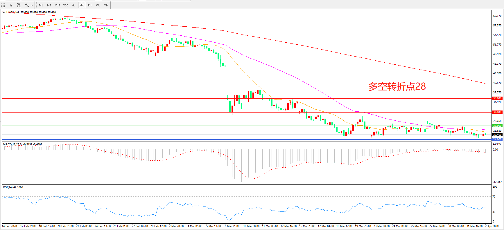 4小时图看,布油延续低位震荡,整体波幅不大,24美元成为短期支撑,短期均线逐渐下压,MACD绿柱增加,RSI指标走平,日内延续震荡概率较大。