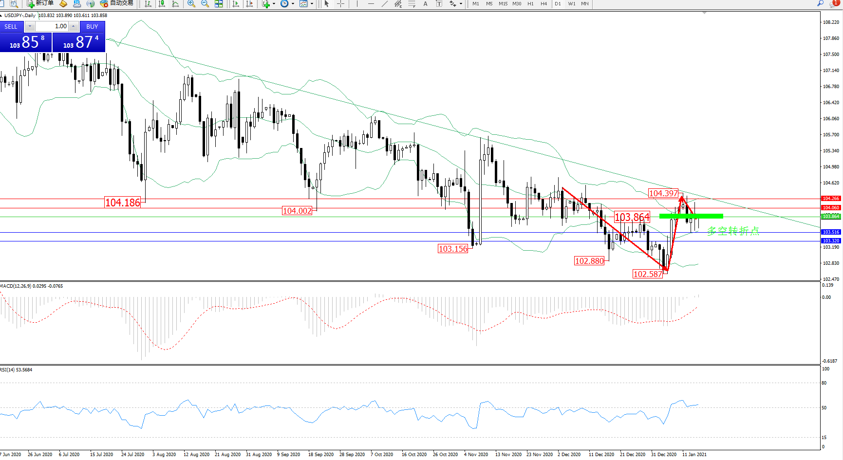 多空转折点:103.864
