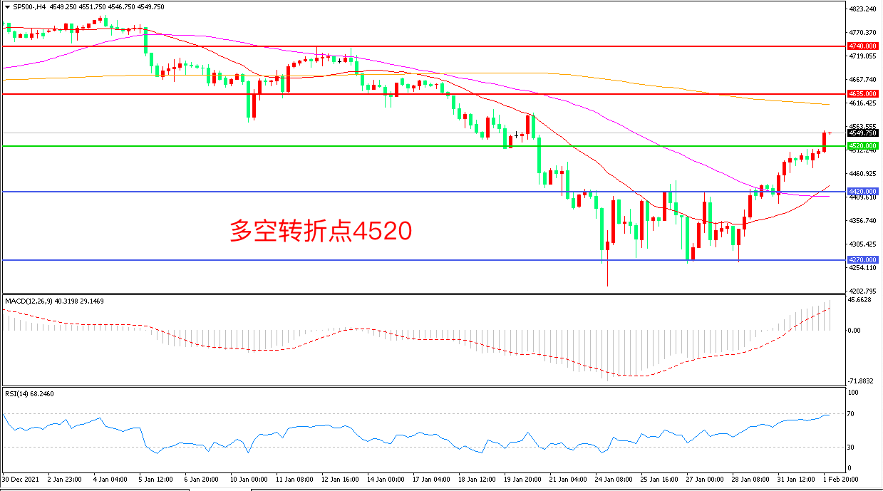 交易策略:在4520.00之上看涨,目标4635.00         4740.00
