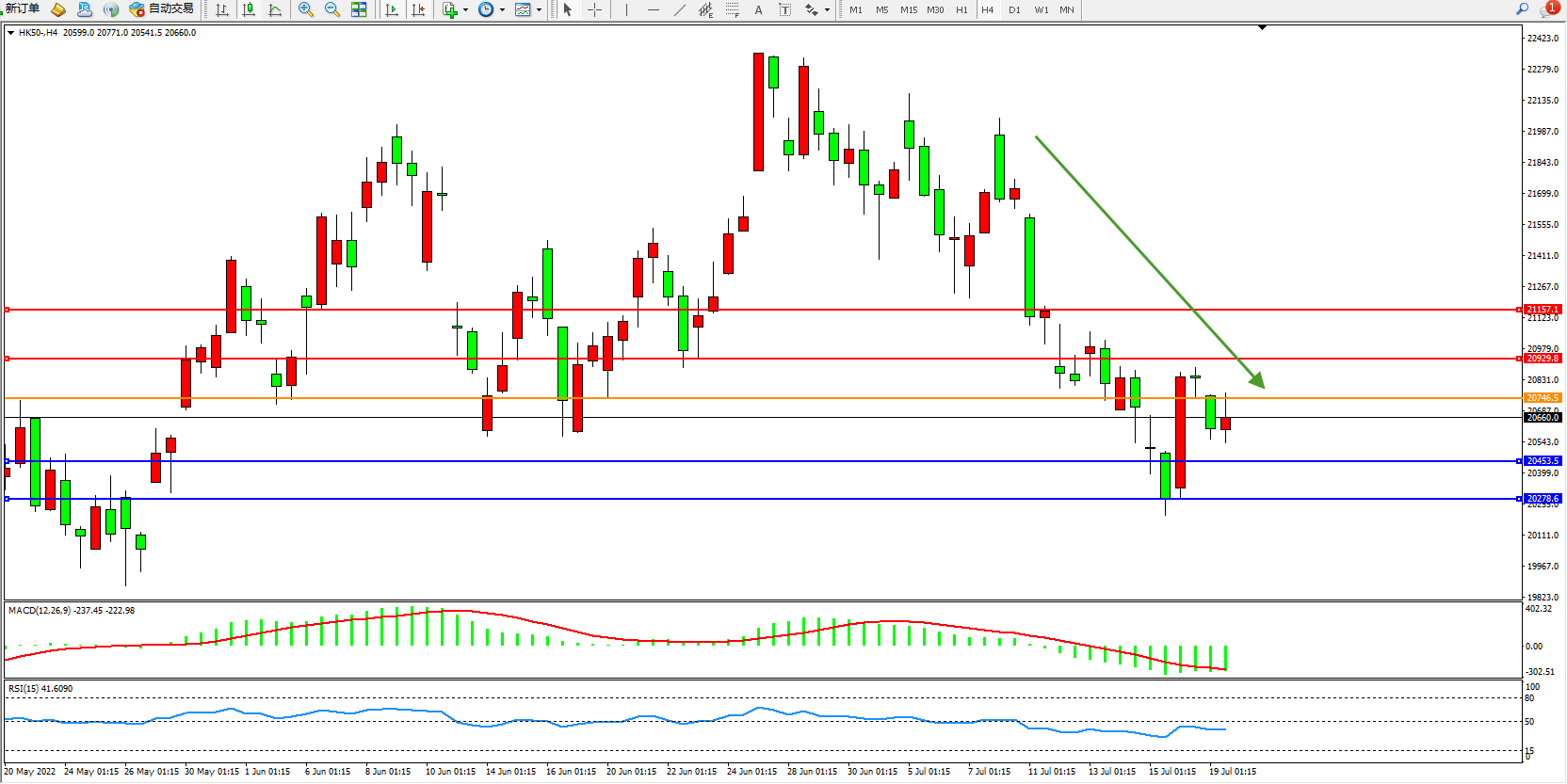香港恒生指数7月19日(周二)收盘下跌185.12点,跌幅0.89%,报20661.06点;港股未能延续昨日反弹行情,三大指数全天走低,恒生科技指数跌1.48%。今日南下资金逆势净流入22.2亿港元,大市成交额缩量至839亿港元。