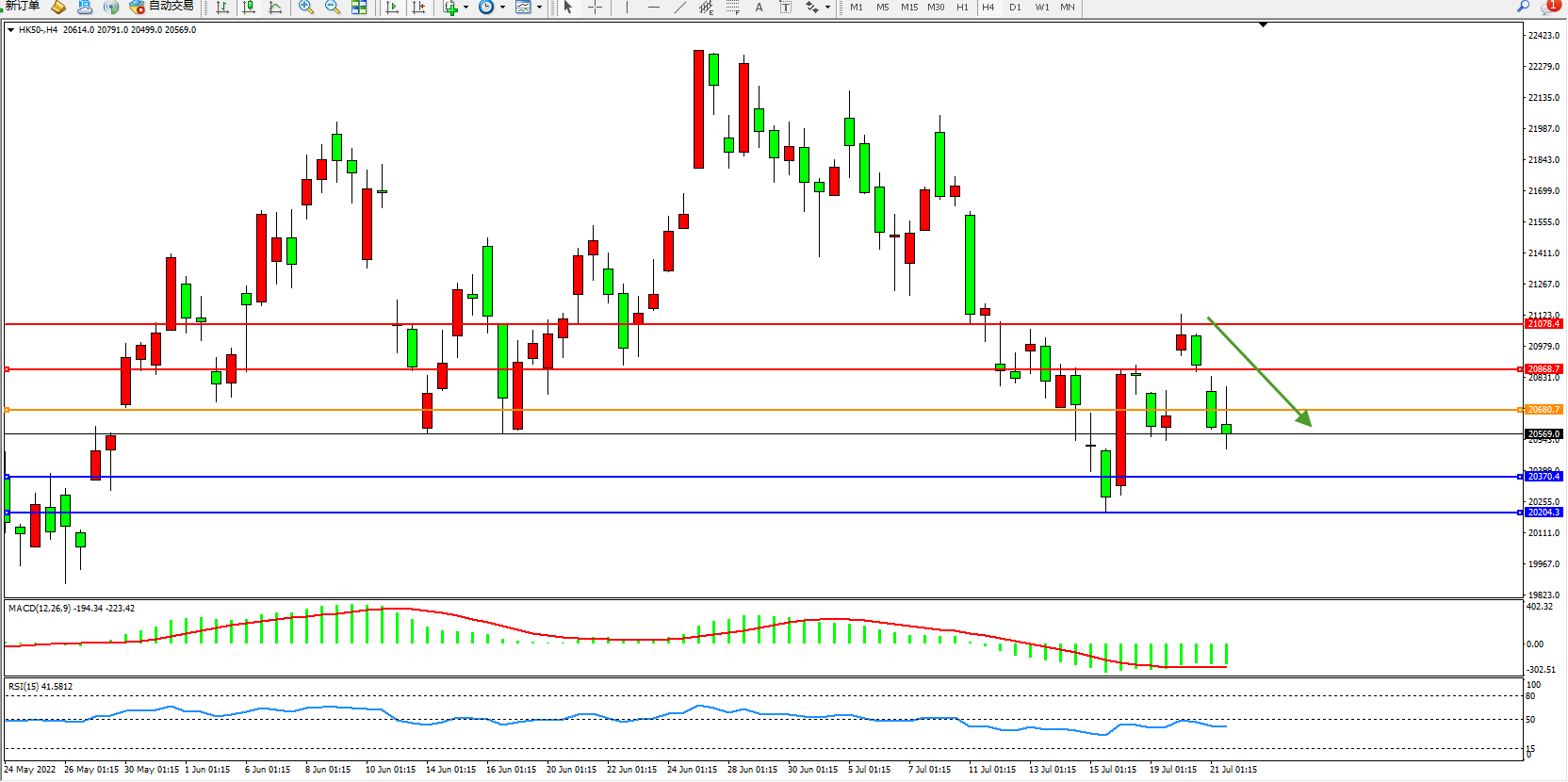香港恒生指数7月21日(周四)收盘下跌315.59点,跌幅1.51%,报20574.63点;港股午后跳水,恒生科技指数小幅收涨0.12%,盘中一度涨超1.2%,大型科技股涨跌不一,网易涨超6%表现较佳,快手、京东小幅上涨,美团跌超2%,银保监会重申坚持“房住不炒”定位,内房股与物管股齐挫;今日南下资金净流入18.31亿港元,大市成交额为1016亿港元。